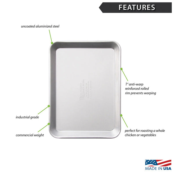 Ready to stand the test of time, the professional durability of this uncoated pan makes everything you bake something you’ll be proud to serve. Rada’s Quarter Sheet Pan is as impressive as it is functional, and is sure to become one of your favorite pans.