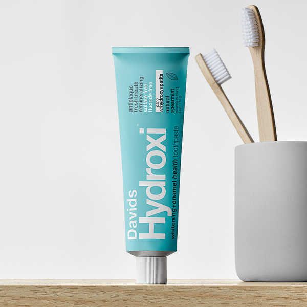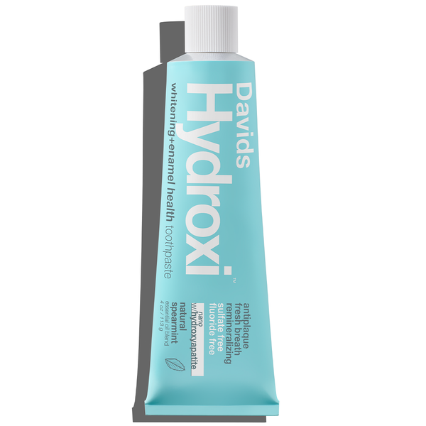 natural whitening / antiplaque / fresh breath / remineralizing Hydroxi™ w/ nano hydroxyapatite for whitening & enamel health high performance formula no artificial flavors, colors, or preservatives EWG VERIFIED™ fluoride free sls free recyclable metal tube premium natural spearmint flavor for a refreshing experience proudly made in usa 4 oz / 113 g